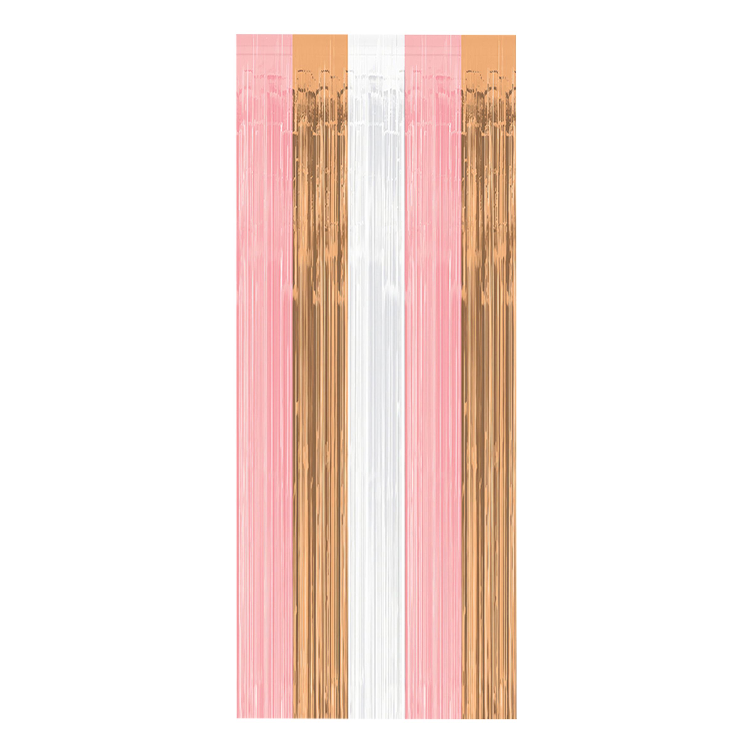 Dörrdraperi Rosa/Guld/Vit är ett blankt draperi som är mycket enkelt att fästa på dörren. Draperiet är i färgerna rosa, guld och vitt. Myten säger att många låter det hänga kvar långt efter att festen har avslutats.