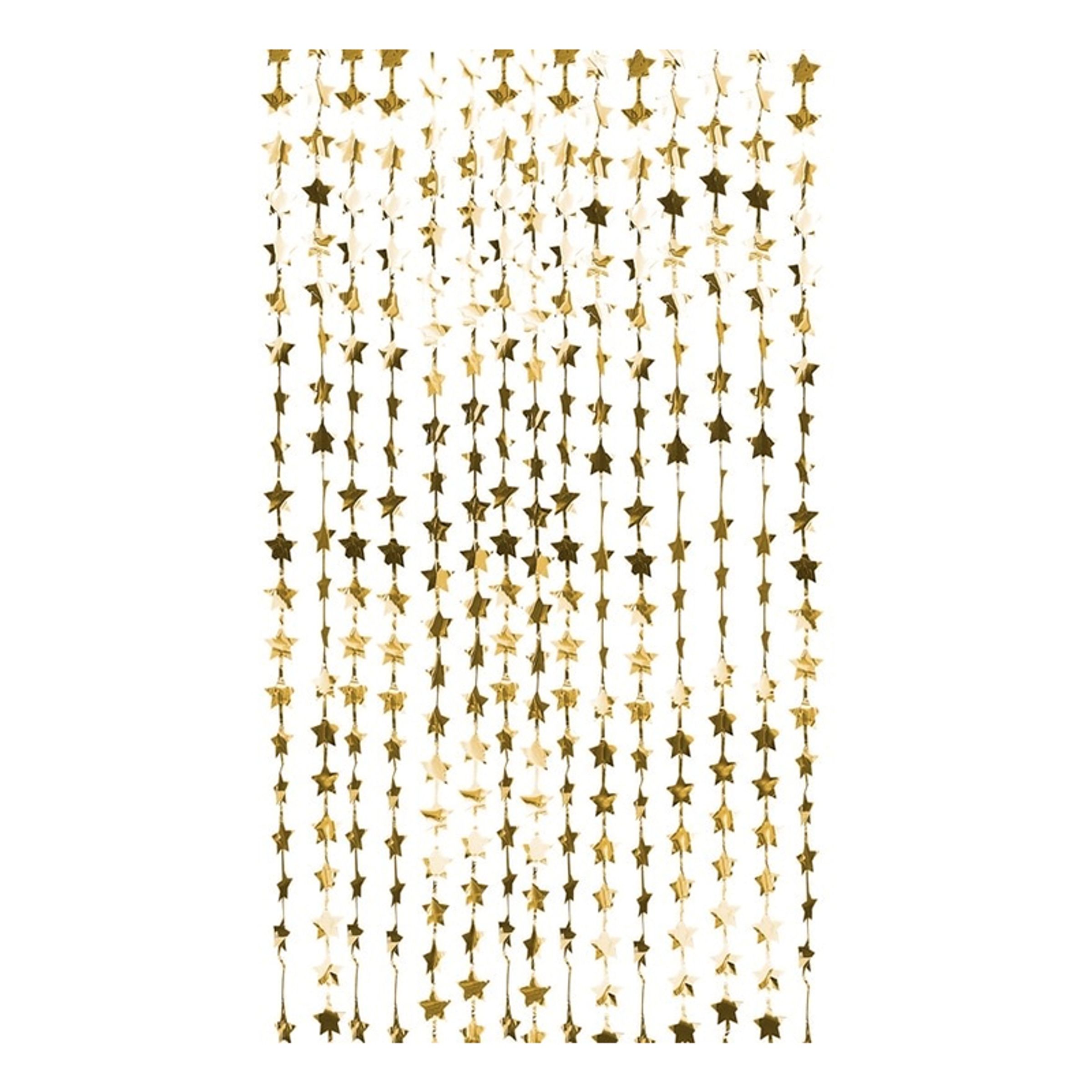Låt din fest glänsa lite extra med det här guldfärgade draperiet med små stjärnor! Draperiet kan hängas upp i en dörröppning, pryda väggen bakom dessertbordet eller fungera som en glittrande bakgrund i ett photo booth. Perfekt till födelsedagskalas, nyårspartyn, bröllop och andra festliga tillfällen!