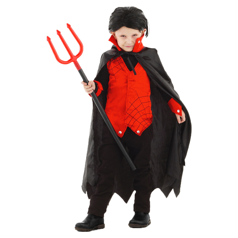 Dracula Maskeraddräkt Barn omfattar en Dracula dräkt för barn. Dräkten består av en röd väst med motiv av svart spindelnät, ett par röda ärmuppslag samt en lång svart mantel med taggig ände. Dräkten är tillverkad i polyester och passar barn.