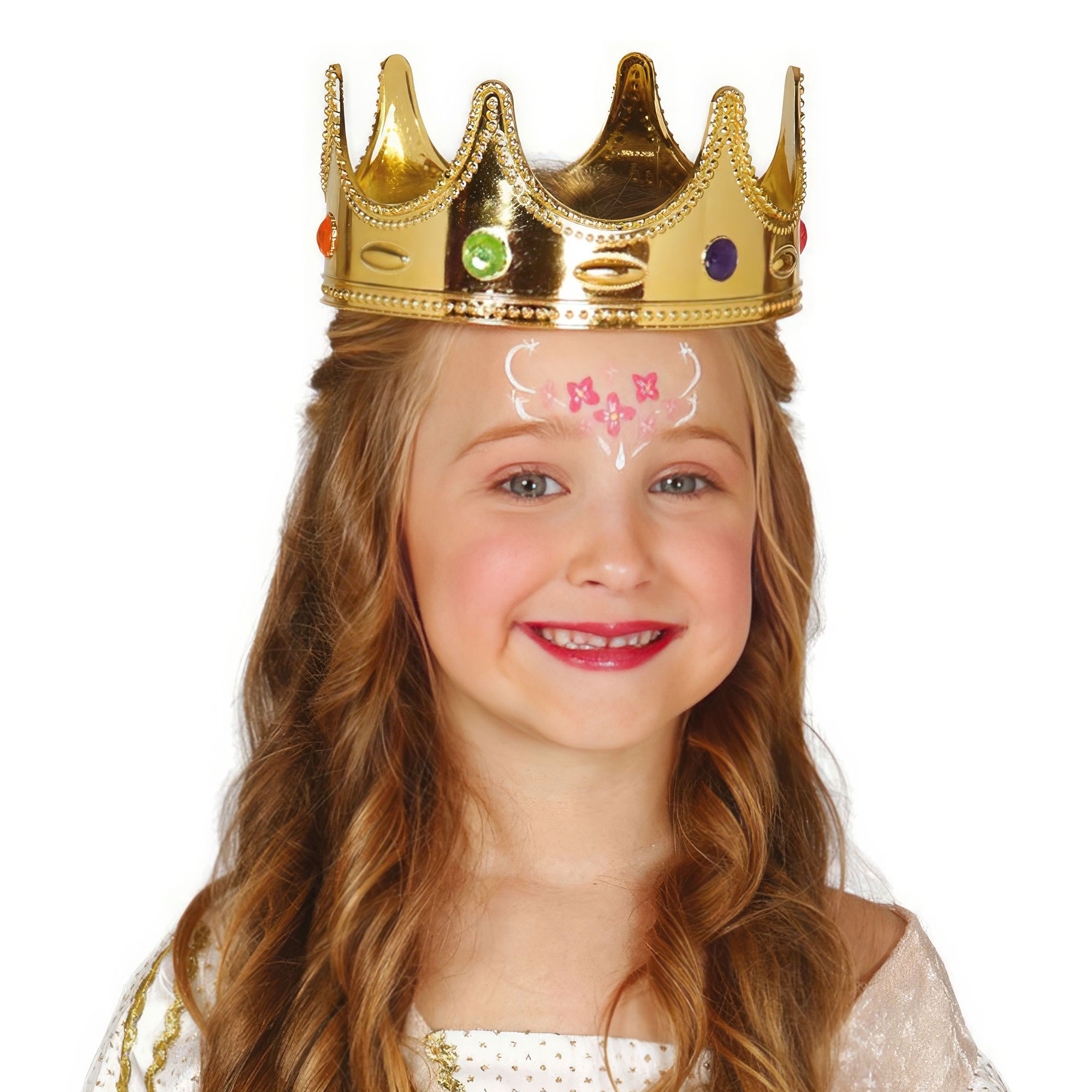 Drottningkrona för Barn är en krona i guldfärg med färgglada detaljer. Kommer i one size för barn och levereras styckvis. Tillverkad av plast.