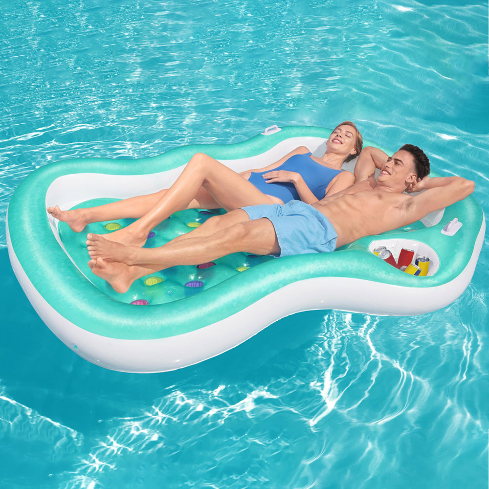 Gör det bekvämt på vattnet och stranden med denna sköna flytmadrass för två! En uppblåsbar dubbel badmadrass med dryckeshållare, perfekt för dig som vill ha god dryck och kanske lite snacks med ut på vattnet. Bestway badmadrass ger extra sköna semesterstunder.