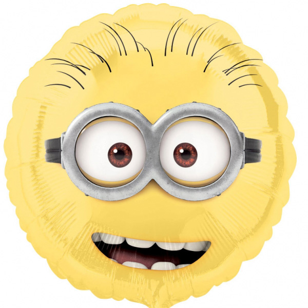 Rund folieballong som föreställer någon av de tre Minionernas ansikte. Dessa små gula figurer förekommer i filmerna Dumma mej 1 och 2. Kombineras med andra ballonger med Minioner på och gör succé på kalaset.