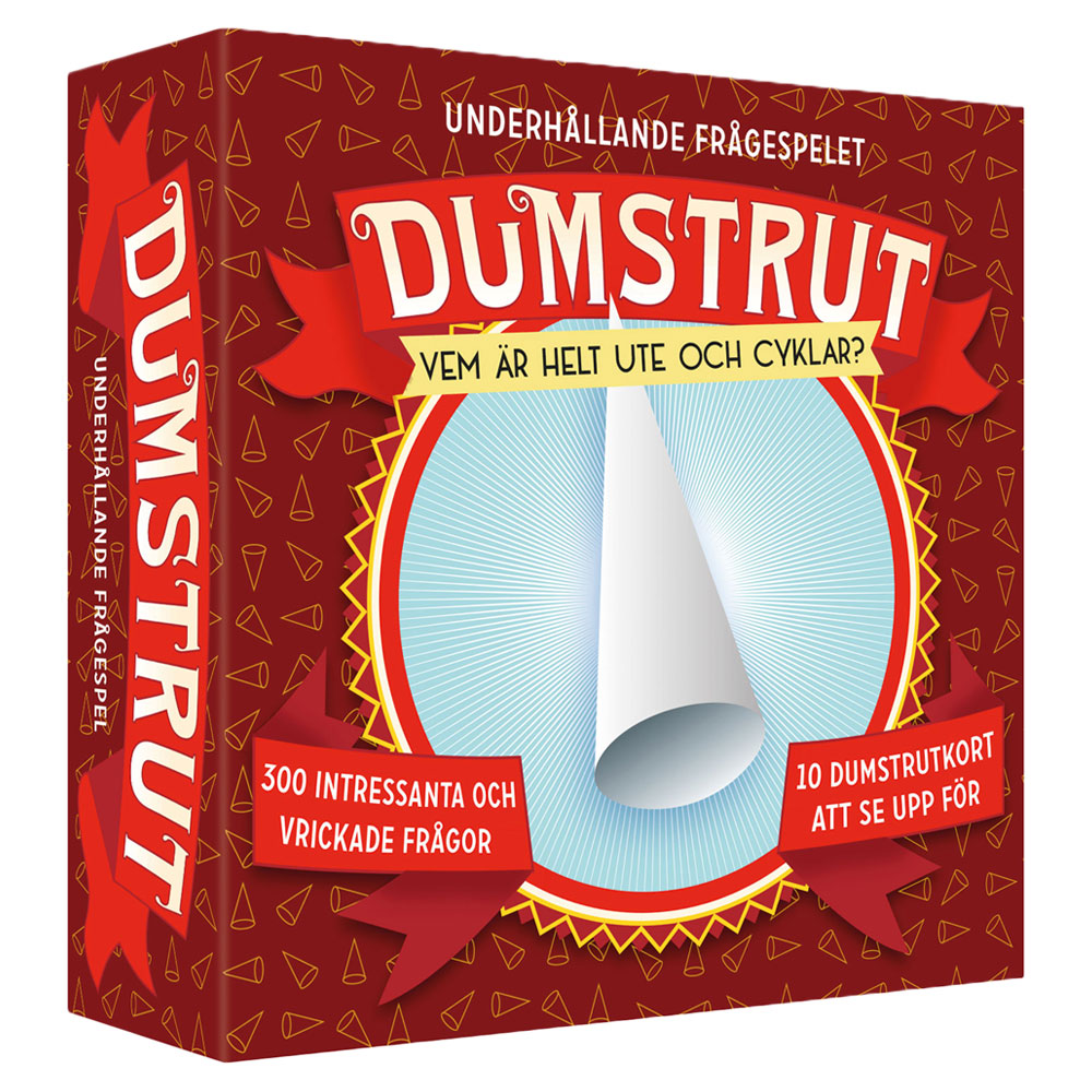 Dumstrut är ett helkul och underhållande spel med över 400 frågor som alla har en sak gemensamt – de är vrickade, lustiga och nästan omöjliga att svara helt rätt på.
