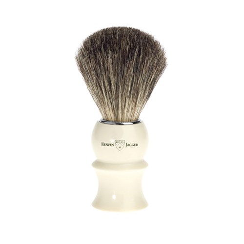 En elegant rakborste från engelska Edwin Jagger. Rakborsten är handgjord med äkta grävlingshår och ger ett perfekt lödder i samband med raktvål eller kräm. Det greppvänliga handtaget är gjort i polyester och finns i färgerna ebony/ebenholts och ivory/elfenben. Borsten ger en exklusiv rakupplevelse samtidigt som den reser skäggstråna för en närmre rakning.
