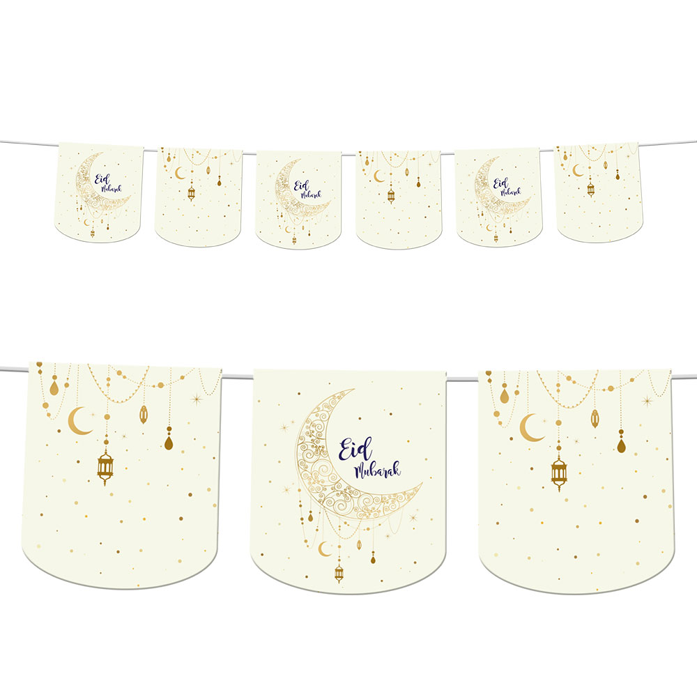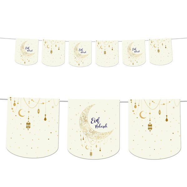 Upplev en festlig atmosfär med vår Eid Mubarak Flagggirlang, den idealiska väggdekorationen som tillför en touch av glädje och tradition vid firandet av Eid. Denna girlang är en elegant eid mubarak dekoration som enkelt höjer stämningen i varje rum.