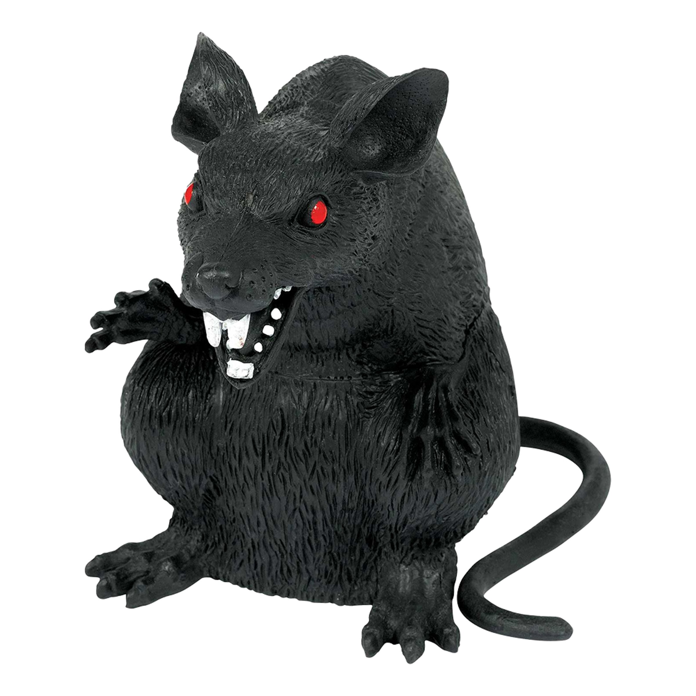 Det här är ingen snäll råtta. Långt ifrån! Det är en riktigt elak råtta, vilket man tydligt ser på ögonen som lyser röda av ilska, och huggtänderna som närmast kan beskrivas som mordvapen. Placera råttan på lämpligt ställe och bjud in till halloweenfest och bevittna skräcken!