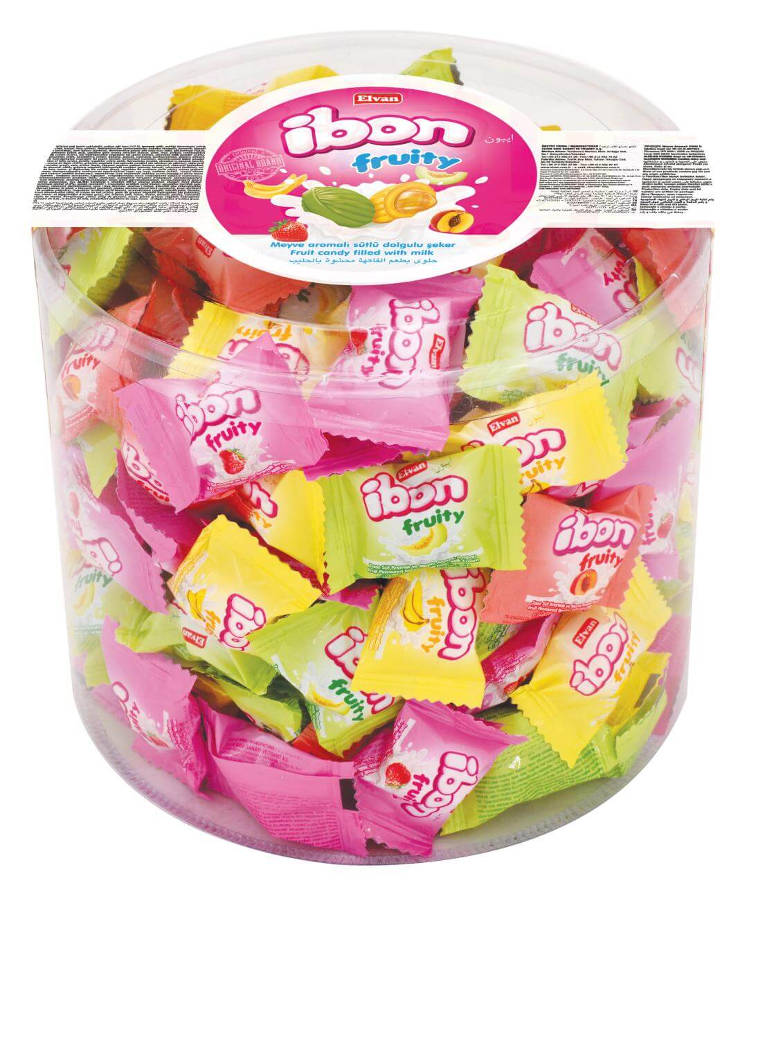 Elvan Ibon Fruity är fruktgodisar som är fyllda med mjölk som kommer i fyra olika smaker, jordgubb, melon, persika och banan! Här får du hela 800 gram av dessa smarriga godisar, så de räcker till hela kalaset!