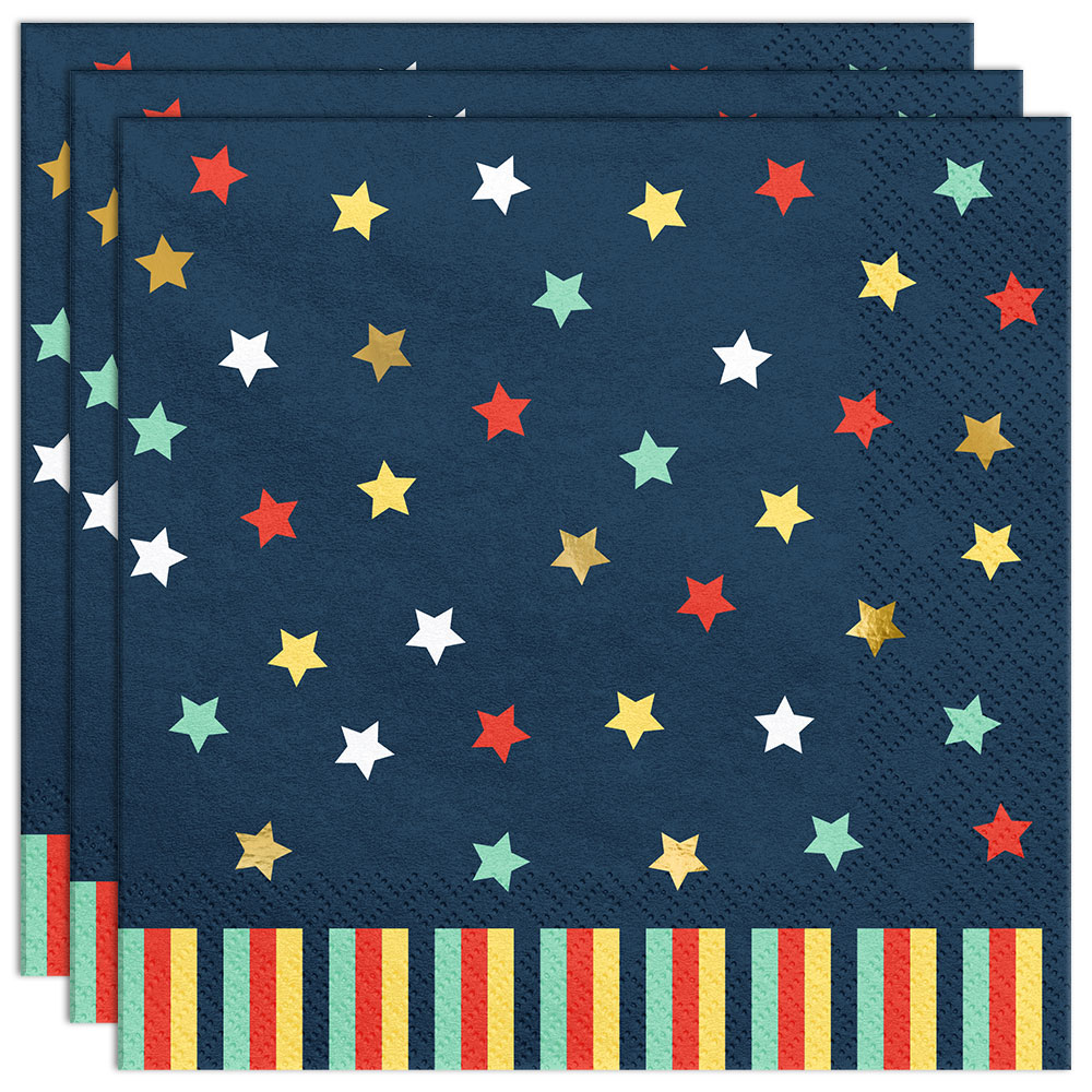 Sätt guldkant på dukningen med servetter som livar upp barnkalaset eller födelsedagsfesten. Perfekt för festdukningen, dessa engångsservetter fångar gästers uppmärksamhet med sina färgglada stjärnor och mönster.