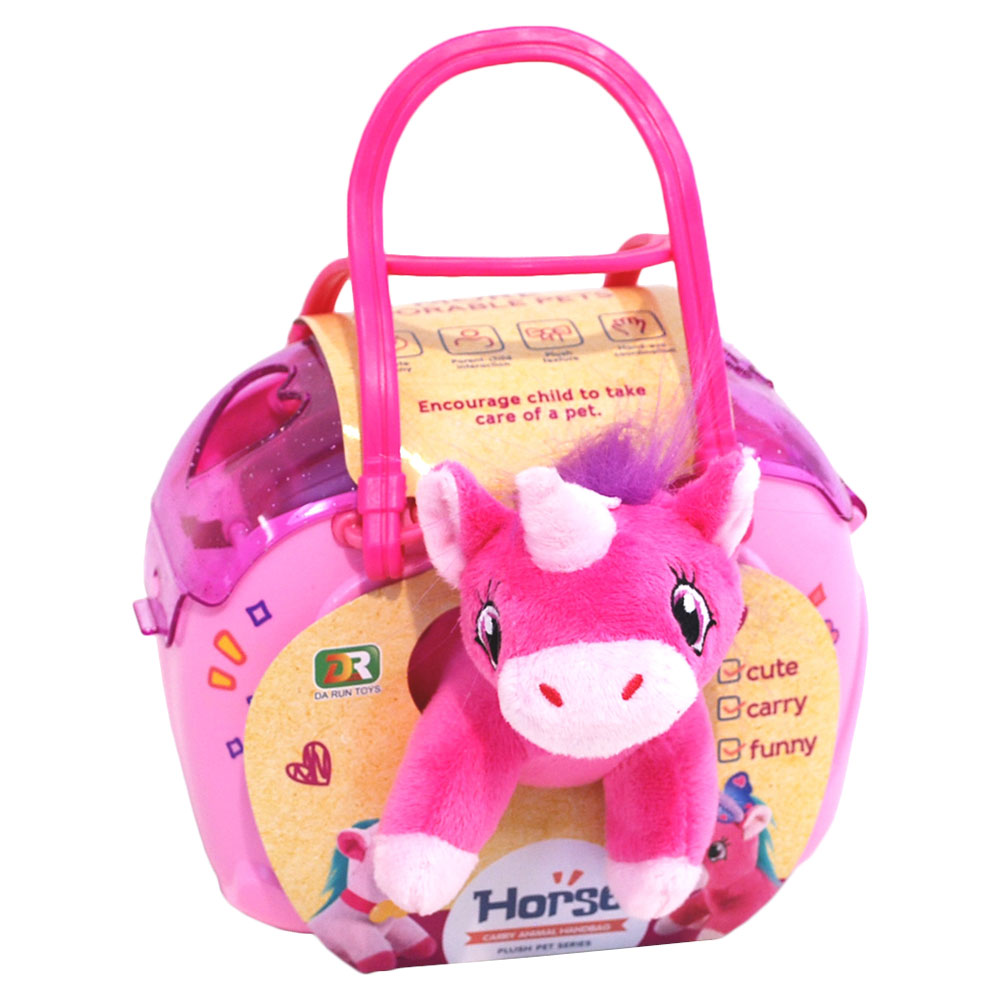 Enhörning i Bur Leksak omfattar ett rosa mjukisdjur i form av en enhörning som kommer i en rosa bur med bärhandtag. Buren är ca 13 cm hög samt 16 cm lång och kommer även med små tillbehör så som leksakshårspännen, en liten leksaksborste och en liten spegel.