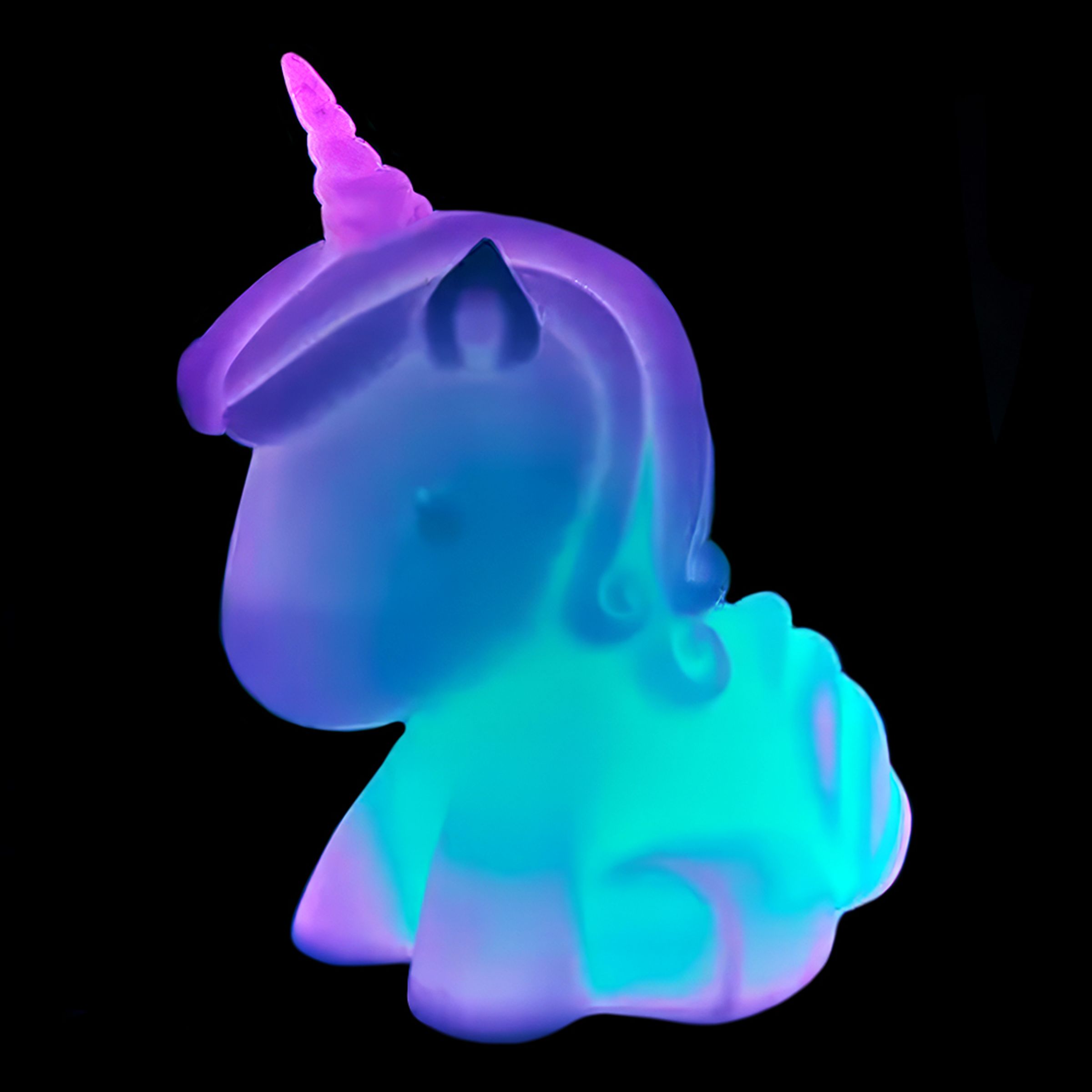 Enhörning Nattlampa är en färgskiftande nattlampa som ser ut som en enhörning. Lampan skiftar mellan 7 olika färger. Drivs av 3 x AAA-batterier (ingår ej).