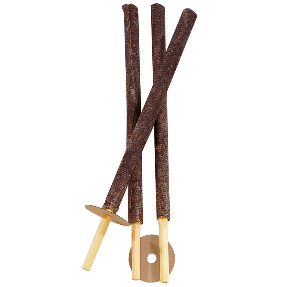 Facklor med Handskydd innehåller 3 stycken facklor med trähandtag samt runda handskydd.
