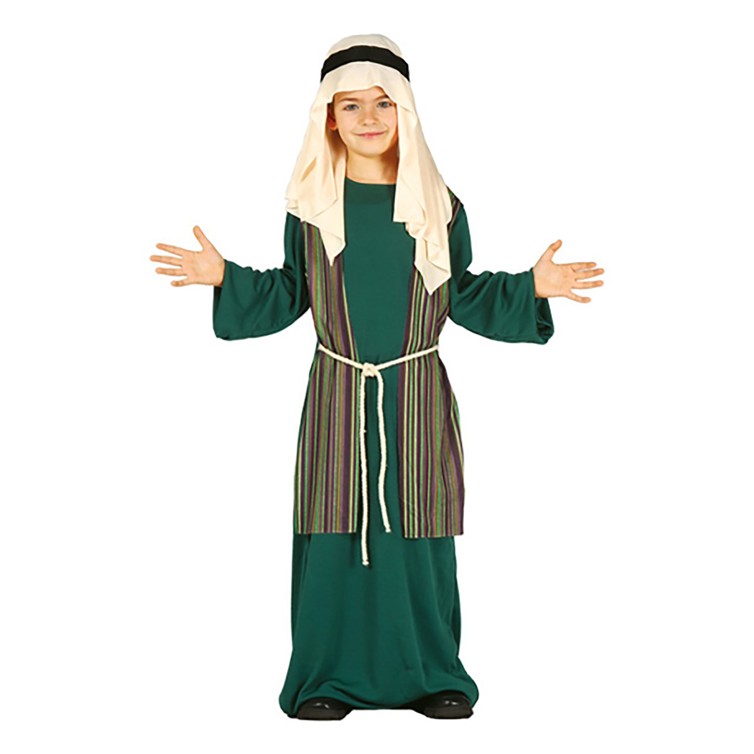 Fåraherde Barn Maskeraddräkt är en väldigt festlig dräkt för den som vill klä ut sig till en hederlig fåraherde inför exempelvis maskeraden eller skolpjäsen inför jul. Komplettera gärna med ett mustigt skägg och respektingivande stav för maximal look!