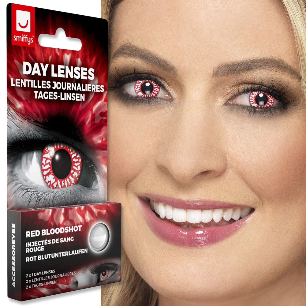 Färgade Linser Red Bloodshot är ett par vita linser med rött mönster. De ultimata linserna för dig som är ute efter ett blodigt och läskigt reslutat. Linserna har ingen styrka och är hållbara i 3 månader.