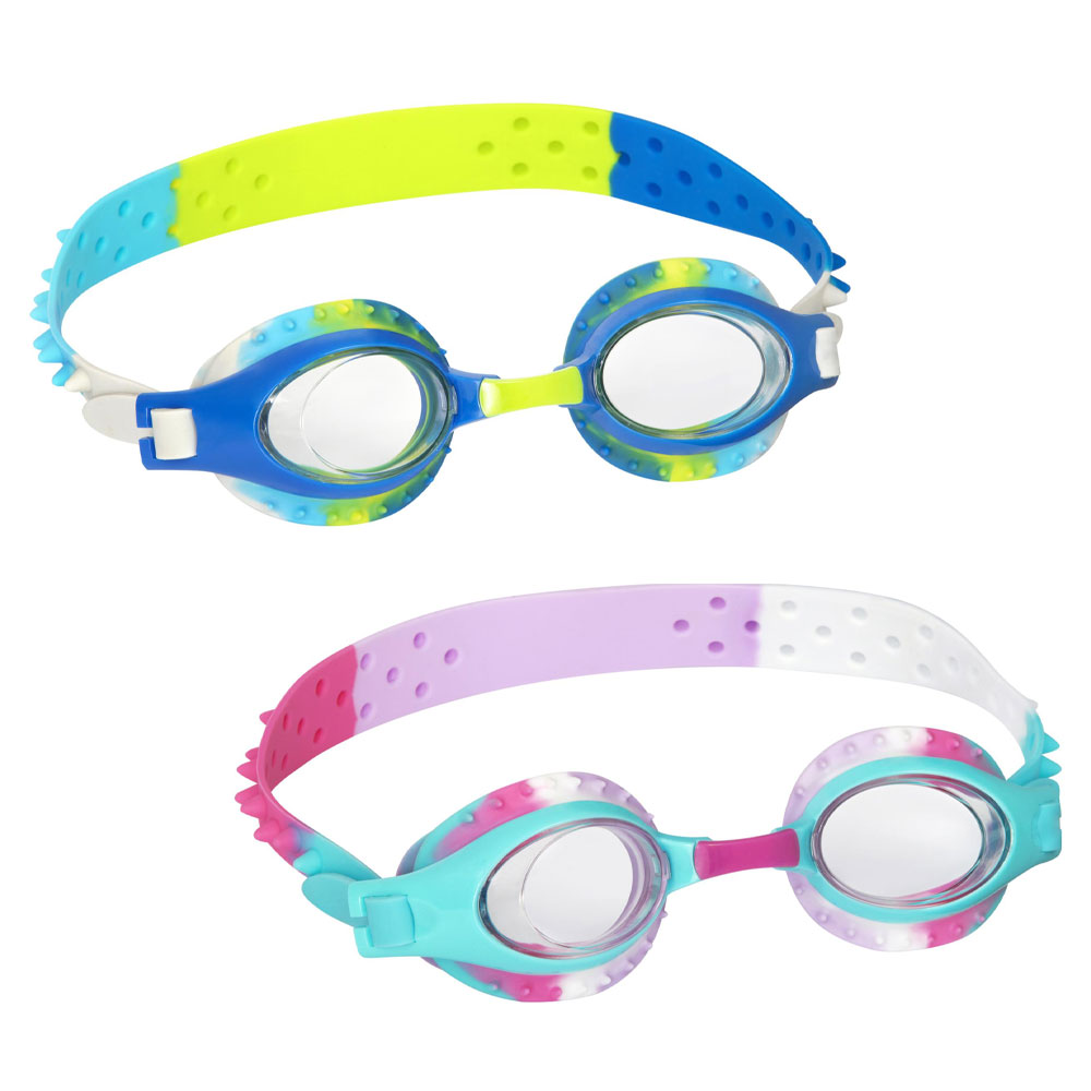 Med dessa färgglada simglasögon med transparenta linser kan ditt barn utan bekymmer simma omkring under vattnet. Bestway simglasögon har UV-filter, anti-dim system och mjuk och skön silikon, allt som behövs för en simtur i vattnet. Perfekt vattenglasögon för alla äventyrssimmande barn.