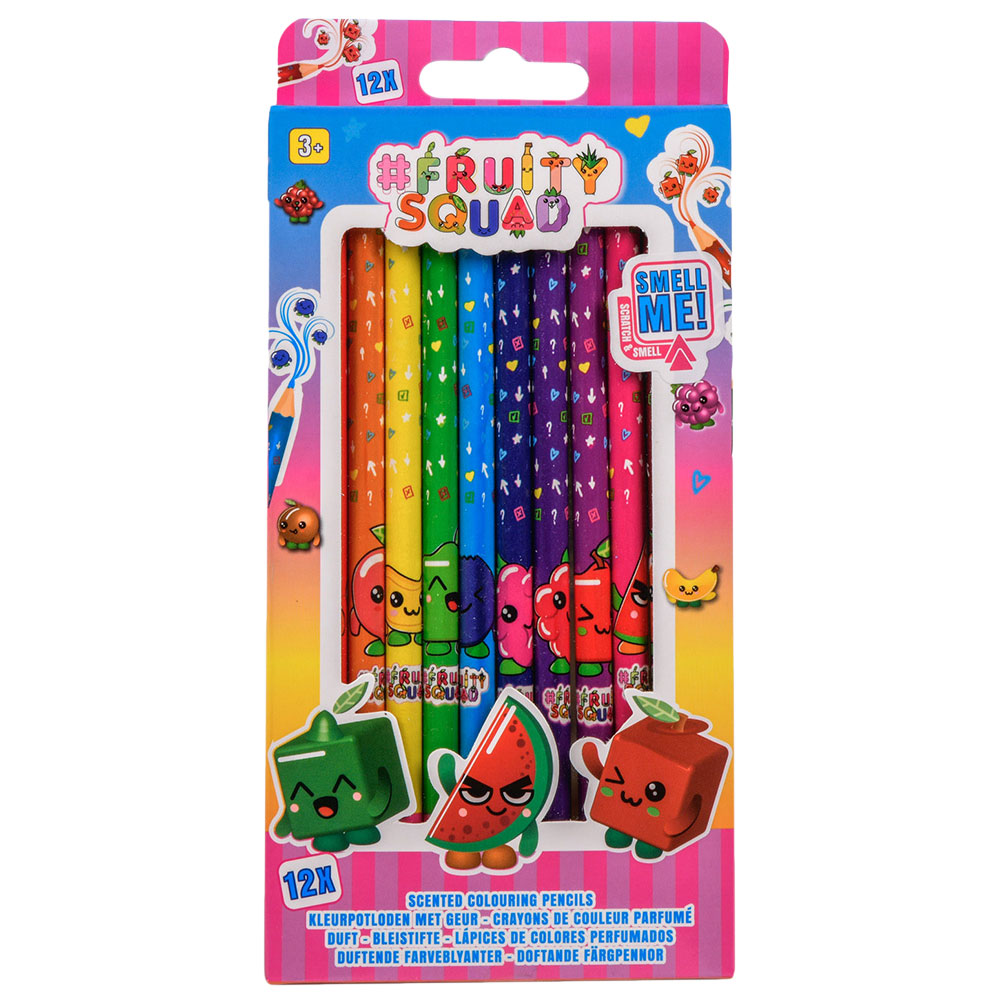 Färgpennor med Doft 12-pack omfattar en förpackning med 12 st färgläggningspennor i olika färger som har doften av olika frukter passande till varje färg.