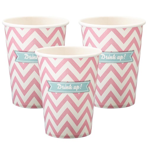 Festartiklar – Chevron, Pappmuggar – rosa (8-pack)