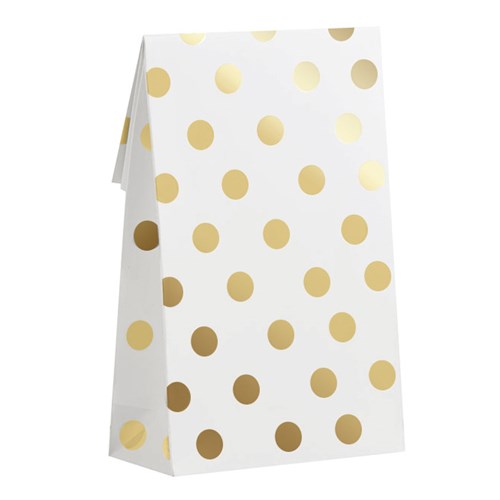 Guldprickiga partypåsar i papp som kan förseglas med medföljande klistermärke. Fyll med godsaker eller små presenter!