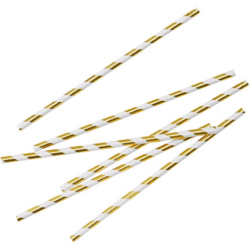 Vit- och guldrandiga sugrör i papp.