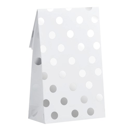Festartiklar – Prickiga, silver, Presentpåsar (8-pack)