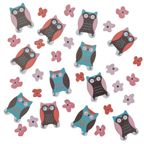 Konfetti med små, små ugglor och blommor. Cuteness overload på middagsbordet!