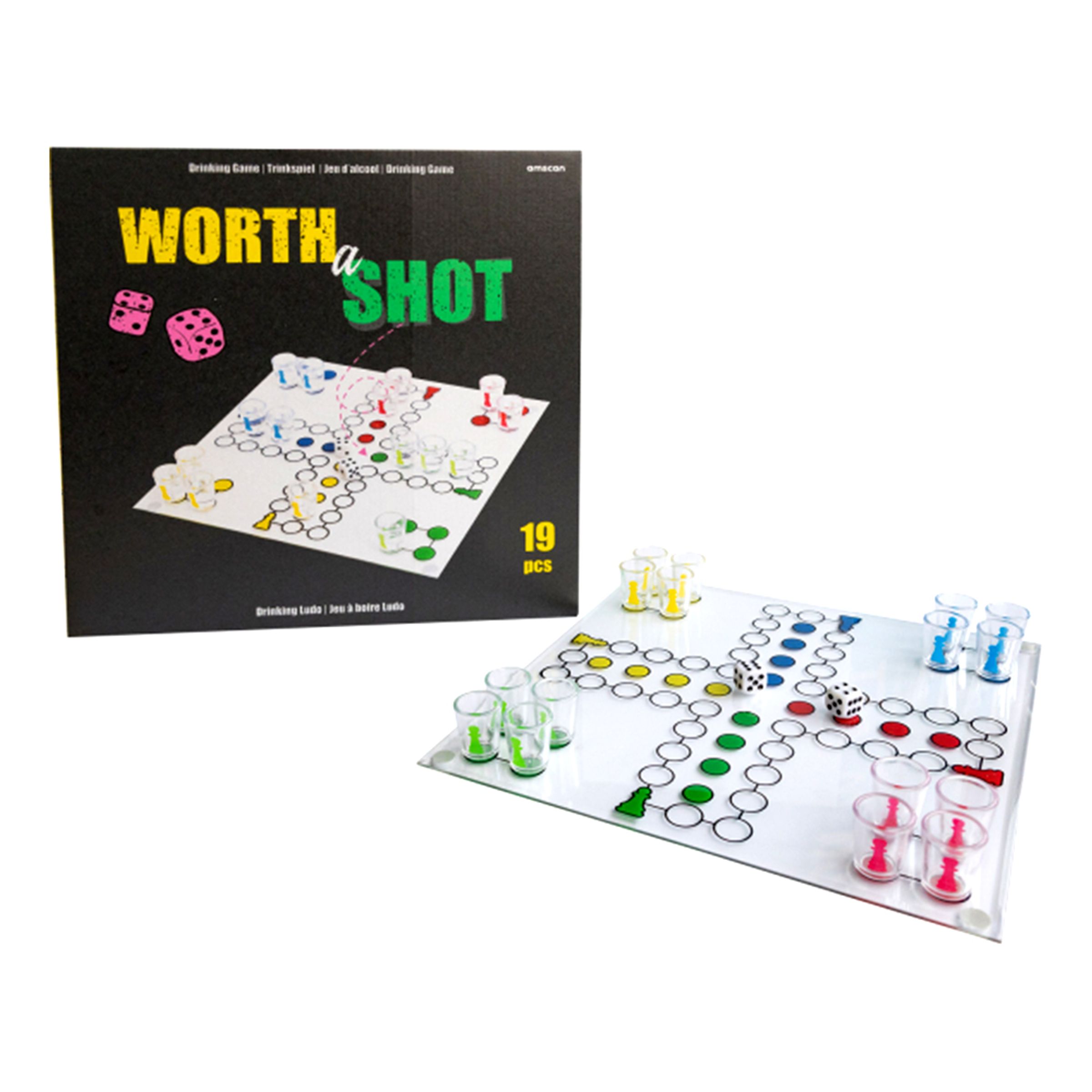 • Inkl. 1x spelplan, 16x shotglas (á 8 ml) och 2x tärningar