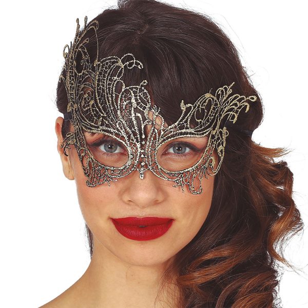 För en förträfflig fest för Halloween eller nyår med maskerad, välj en guldfärgad ögonmask med filigrandetaljer. Den kompletterar varje look och hålls på plats med ett elegant svart band.