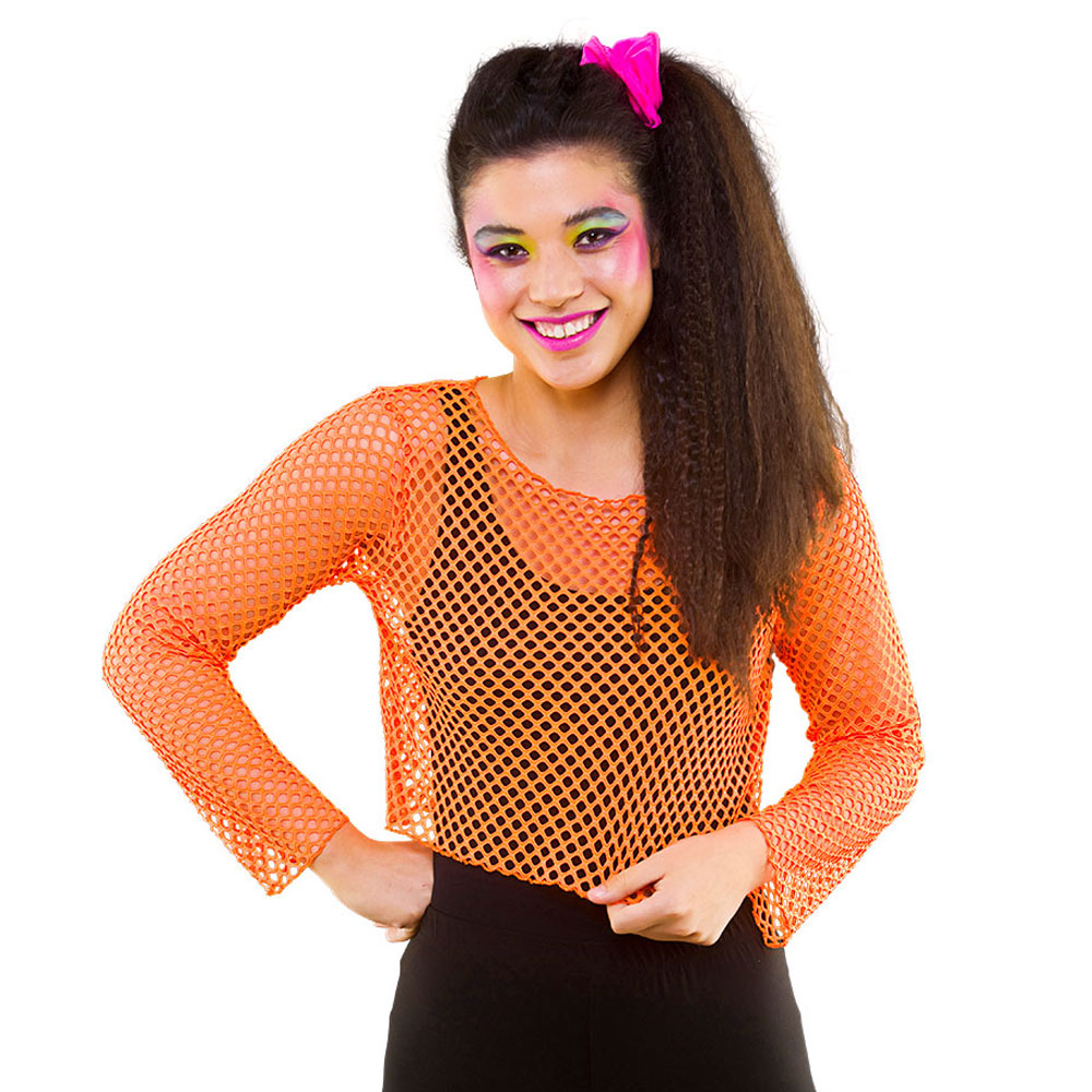 Längtar du tillbaka till 80-talets mode? Då kommer denna fishnet tröja falla dig i smaken! En tuff nättröja i en häftigt orange nyans som garanterat kommer att få dig att synas på 80-tals maskeraden. Bär nättoppen som den är eller para ihop den med andra 80-tals maskerad tillbehör för att skapa din egna 80-tals utklädnad.
