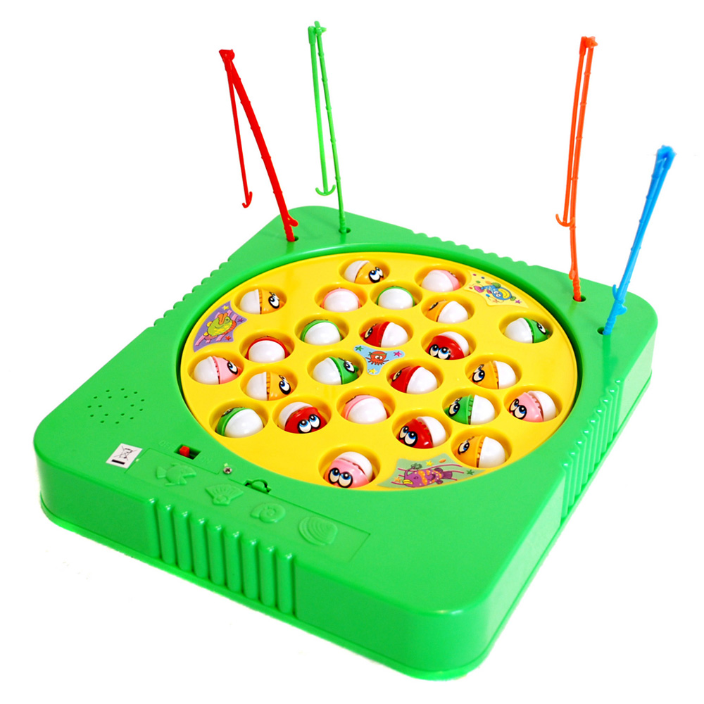 Fiskespel omfattar ett spel för barn där du ska försöka fånga upp så många fiskar som möjligt med ett fiskespö samtidigt som fiskarna snurrar runt och gapar. Spelaren som fångat flest fiskar vinner.
