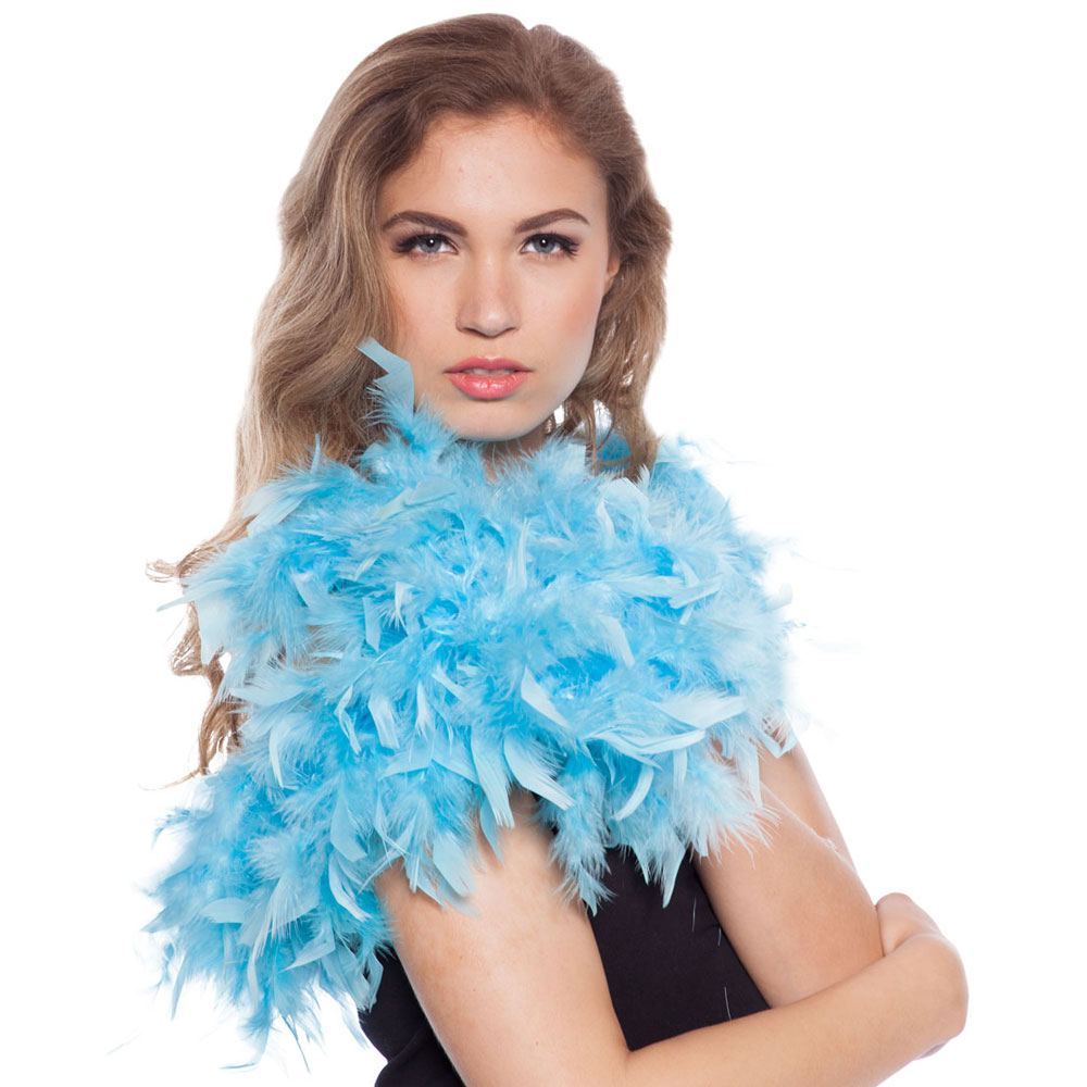En fjäderboa kan endast beskrivas som fabulös, den här boan är vacker ner till sista fjäder, den passar till fest, till party eller kanske t.o.m. en möhippa, boan är en ljus blå boa och kan verkligen passa in på vilken tillställning som helst.