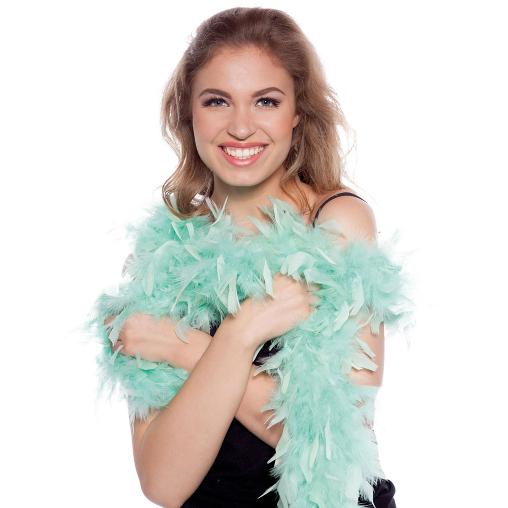 Mint grön är en spännande färg som inte ofta används, men kan vara riktigt snygg när den väl kommer till användning. Som med den här fjäderboan, boan är en vacker mint grön färg och kommer absolut att passa in på vilken fest eller vilket party du än ska på, en boa är skapad av ett lager av flera fjädrar. Ska du inte använda boan till en fest, så kan den faktiskt användas till att göra påskfjädrar.