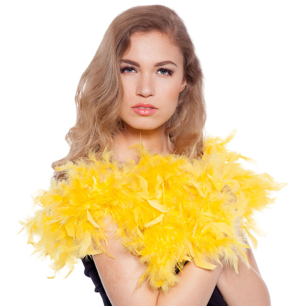 Fjäderboa Neon Gul omfattar en fjäderboa i gult. Tänk på att skaka loss boan innan användning för att få bort alla lösa fjädrar. Ett tips är att spraya boan med vanligt hårspray!