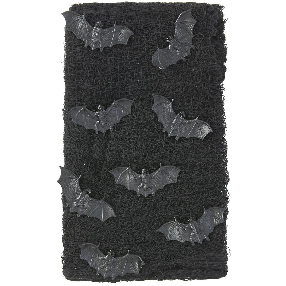 Fladdermöss på Tyg Dekoration omfattar ett stort svart tyg med åtta stycken plast fladdermöss.