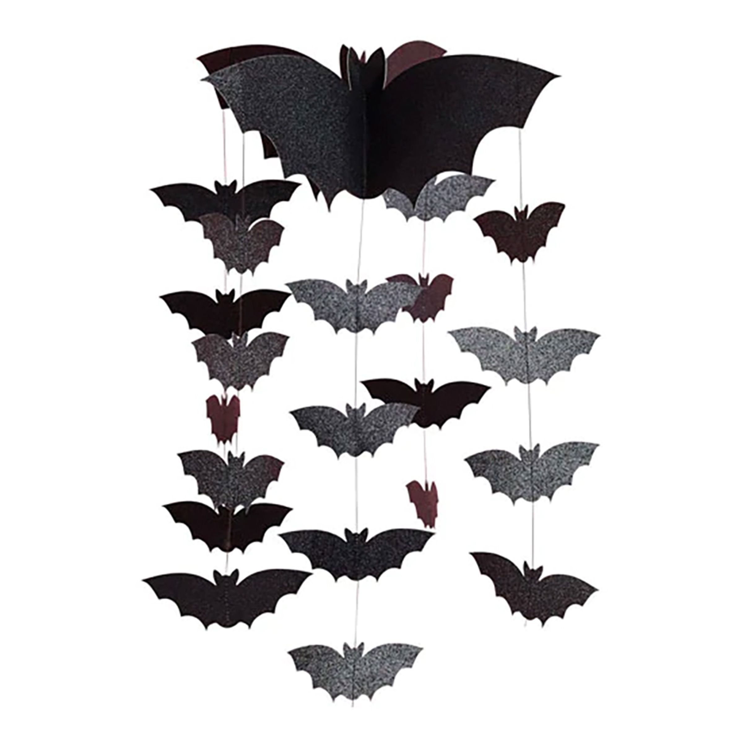 Fladdermus Hängande Dekoration är en mobil med halloweentema. Dekorationen har hängande svarta fladdermöss.