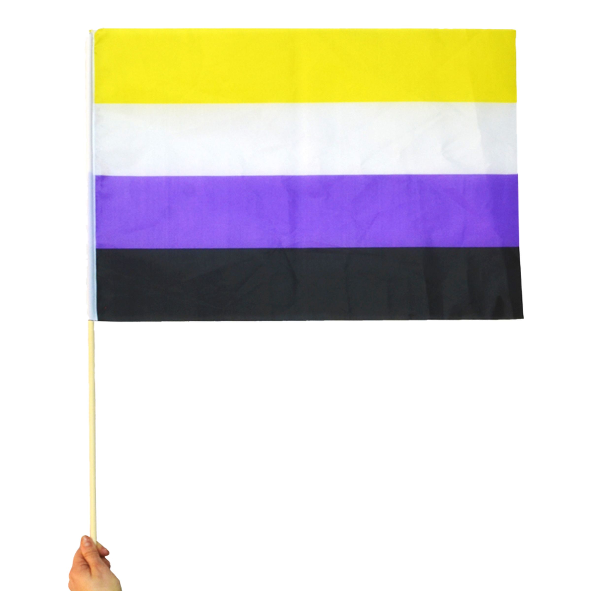 Flagga Pride Ickebinär på Pinne har en snygg och praktisk storlek i ickebinära flaggans färger. Perfekt till pridetåget!