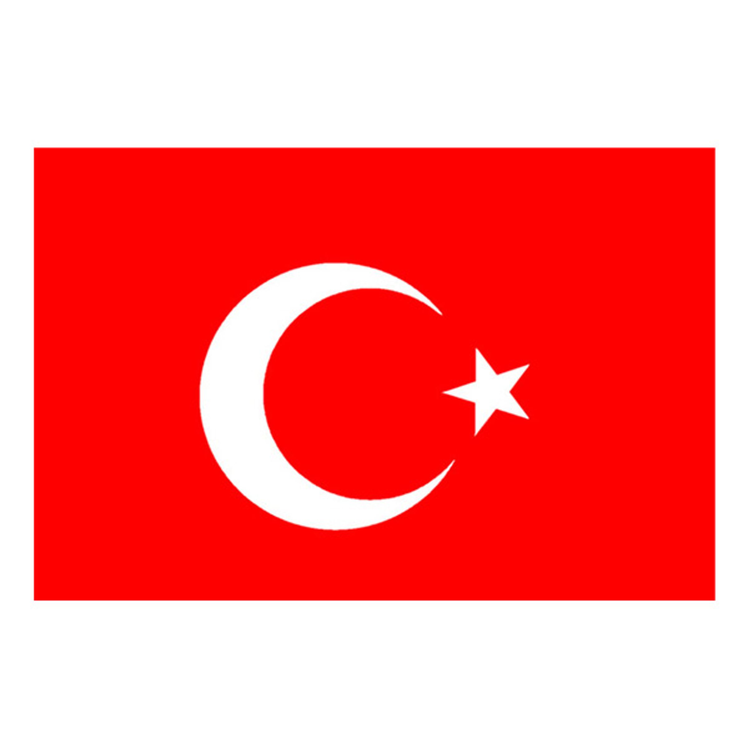 Flagga Turkiet är ca 155×90 cm och är endast avsedd för dekoration. Den är tillverkad i polyester och har två metallringar i hörnen på ena kortsidan för enkel upphängning.