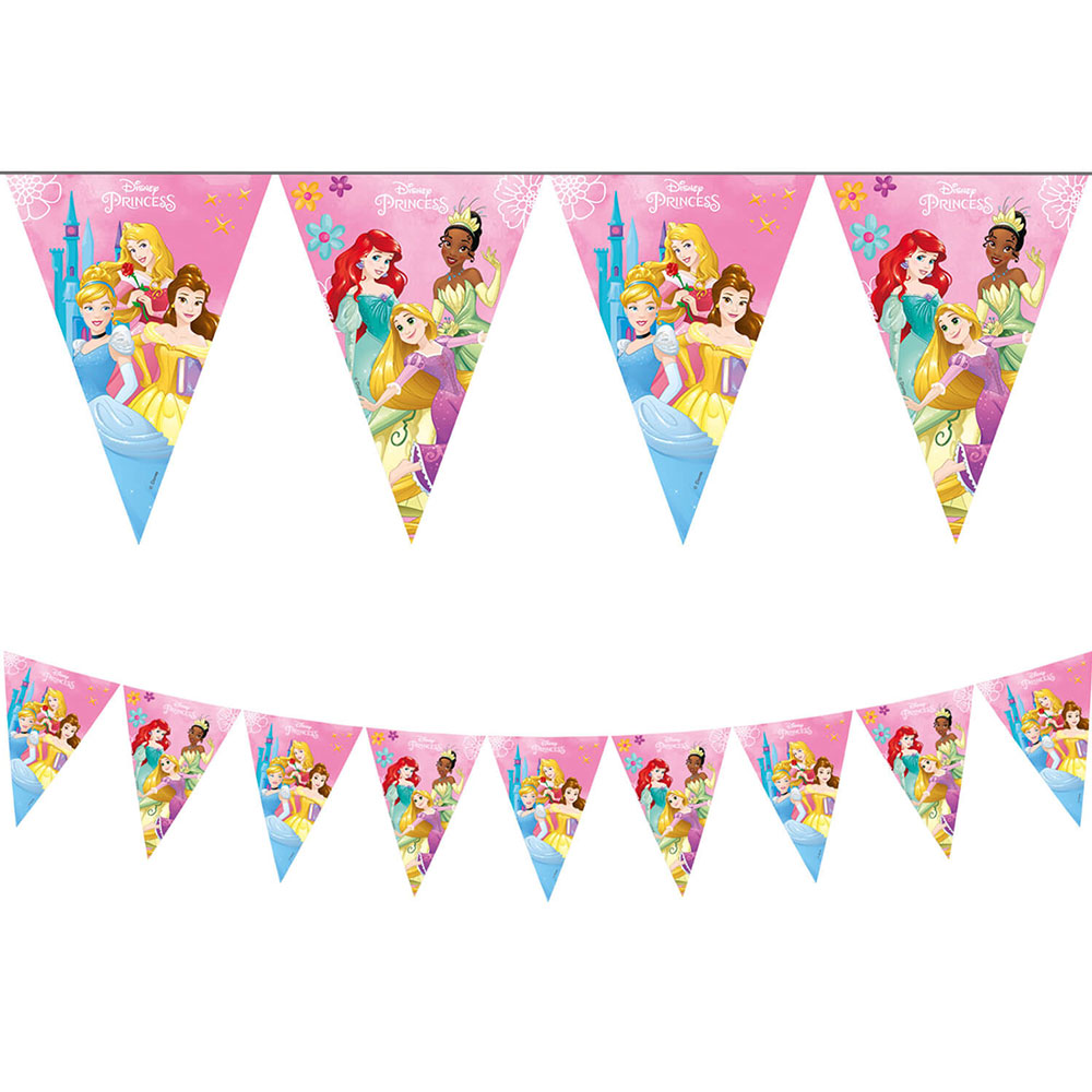 Flaggirlang Disney Prinsessor Live Your Story omfattar en 2,3 meter lång flaggirlang i rosa med motiv av Disney prinsessor. Flaggorna är ca 25 x 18 cm stora och sitter på ett ljusrosa band. Tillverkad i papp.