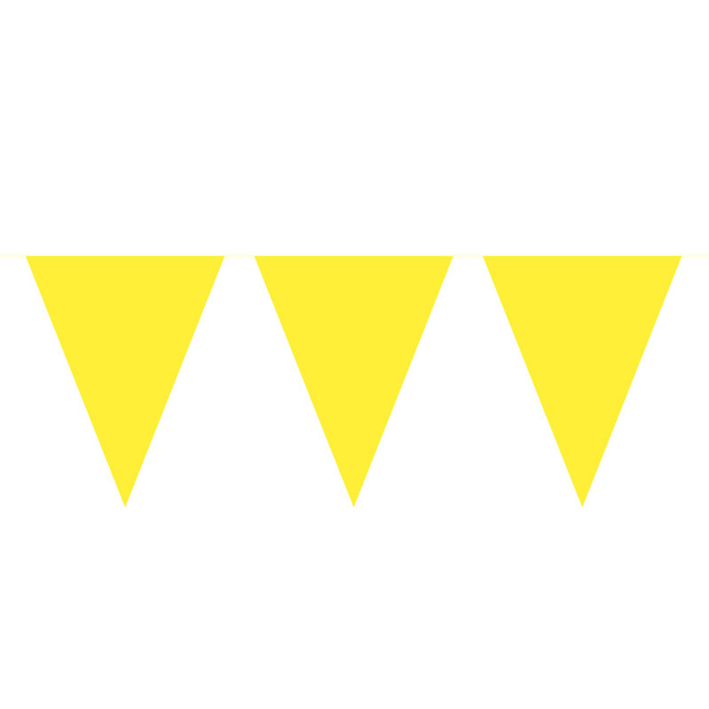 Flaggirlang i härlig gul nyans som blir en utmärkt dekoration till påsken eller sommarens alla kalas och fester. Med den här vimpelgirlangen får du enkelt till en festlig stämning som får firandet att kännas extra härligt. Kort sagt en utmärkt girlang med stora flaggor för alla som vill pynta i gult.