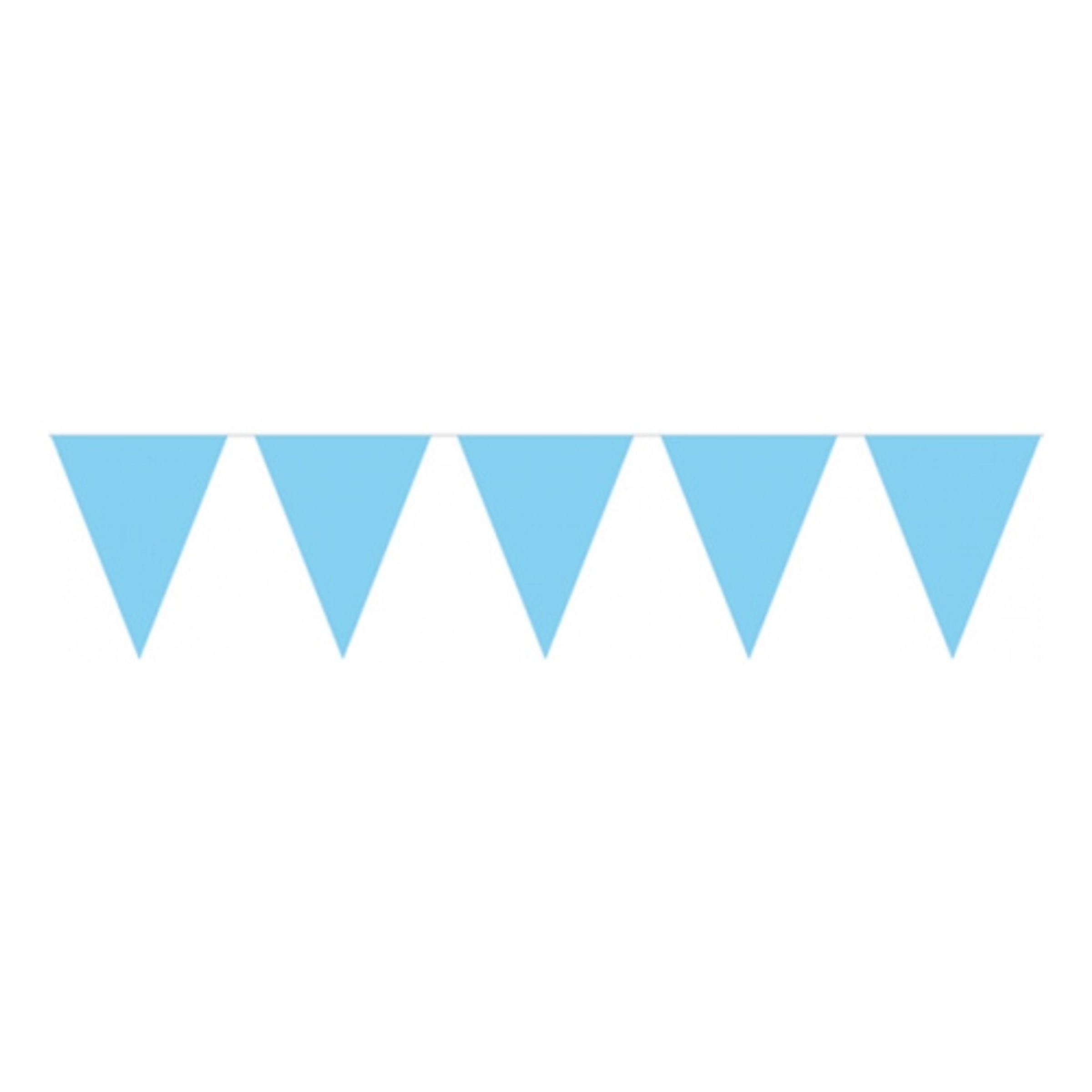 Flaggirlang mini ljusblå är cirka 3m lång och består av 12st små flaggvimplar som är cirka 14cm höga och tillverkade i ett plastmaterial.