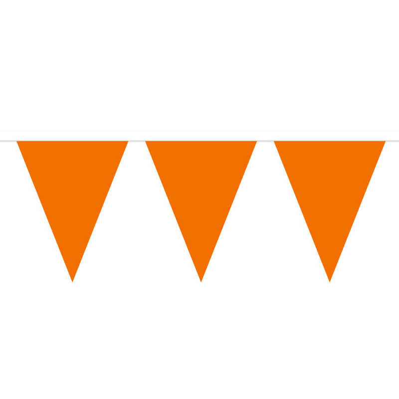 Få till en oslagbar partystämning med denna flaggirlang i orange som du kan hänga vid ingången, eller varför inte över matbordet?