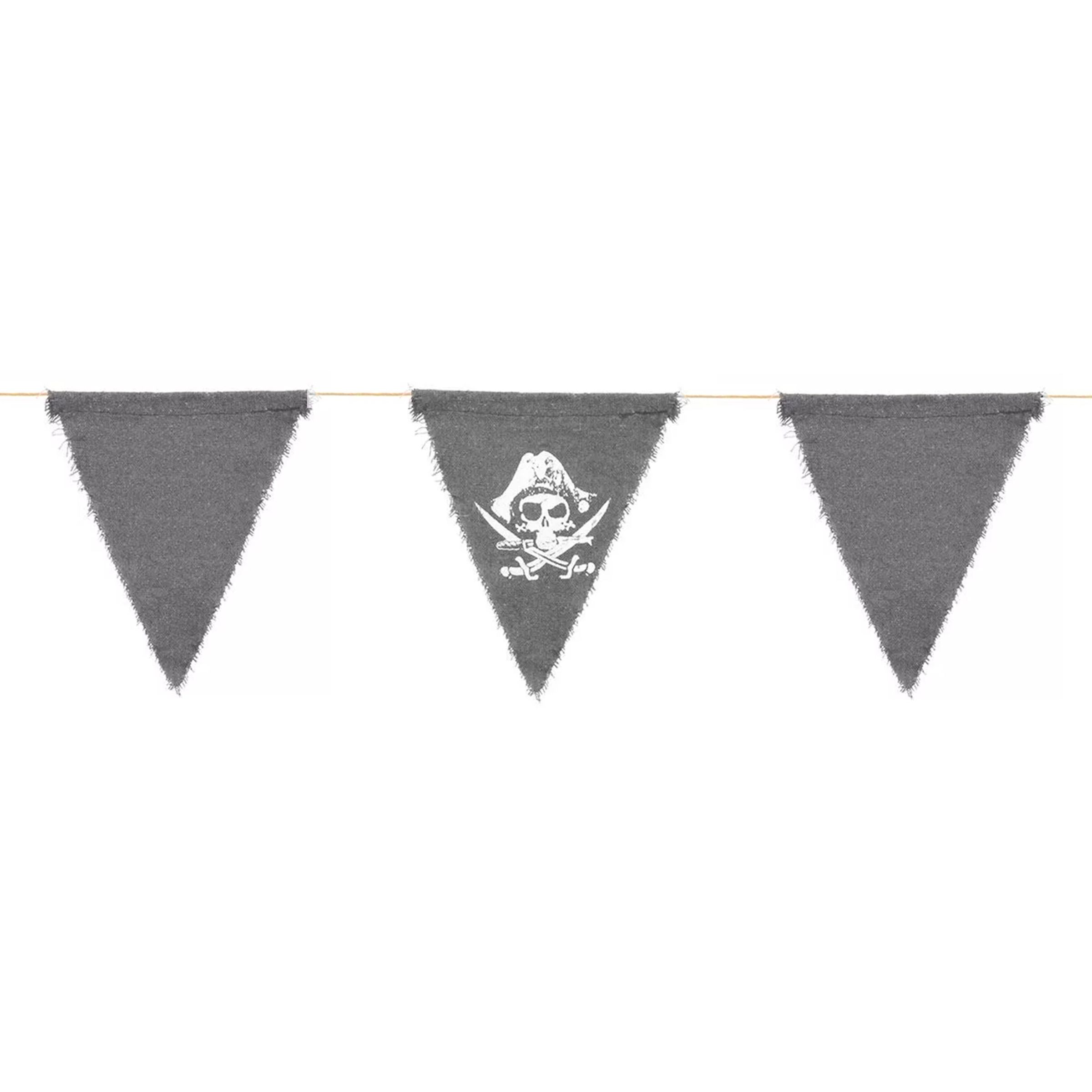 Dekorera med den här coola girlangen på nästa kalas med pirattema! Den är enkel att hänga upp och passar lika bra över kalasbordet som längs en vägg. Klä gärna ut er till pirater och segla sedan iväg över de sju haven, har ni tur kanske ni hittar en skatt!