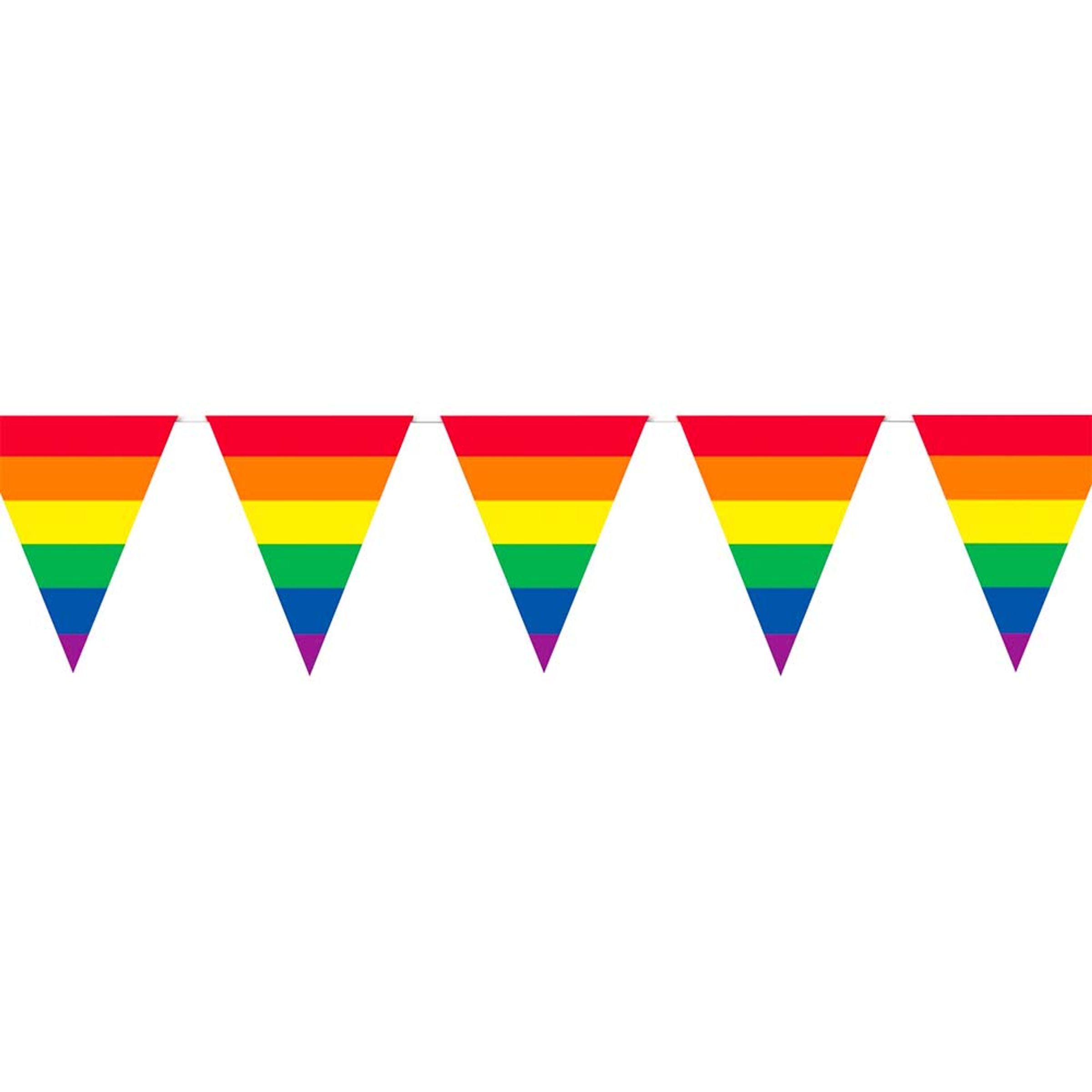 Se till att dekorera din pridefest för en maxad partystämning med denna läckra flaggirlang. Girlangen passar givetvis även till kalas med regnbåge som tema.