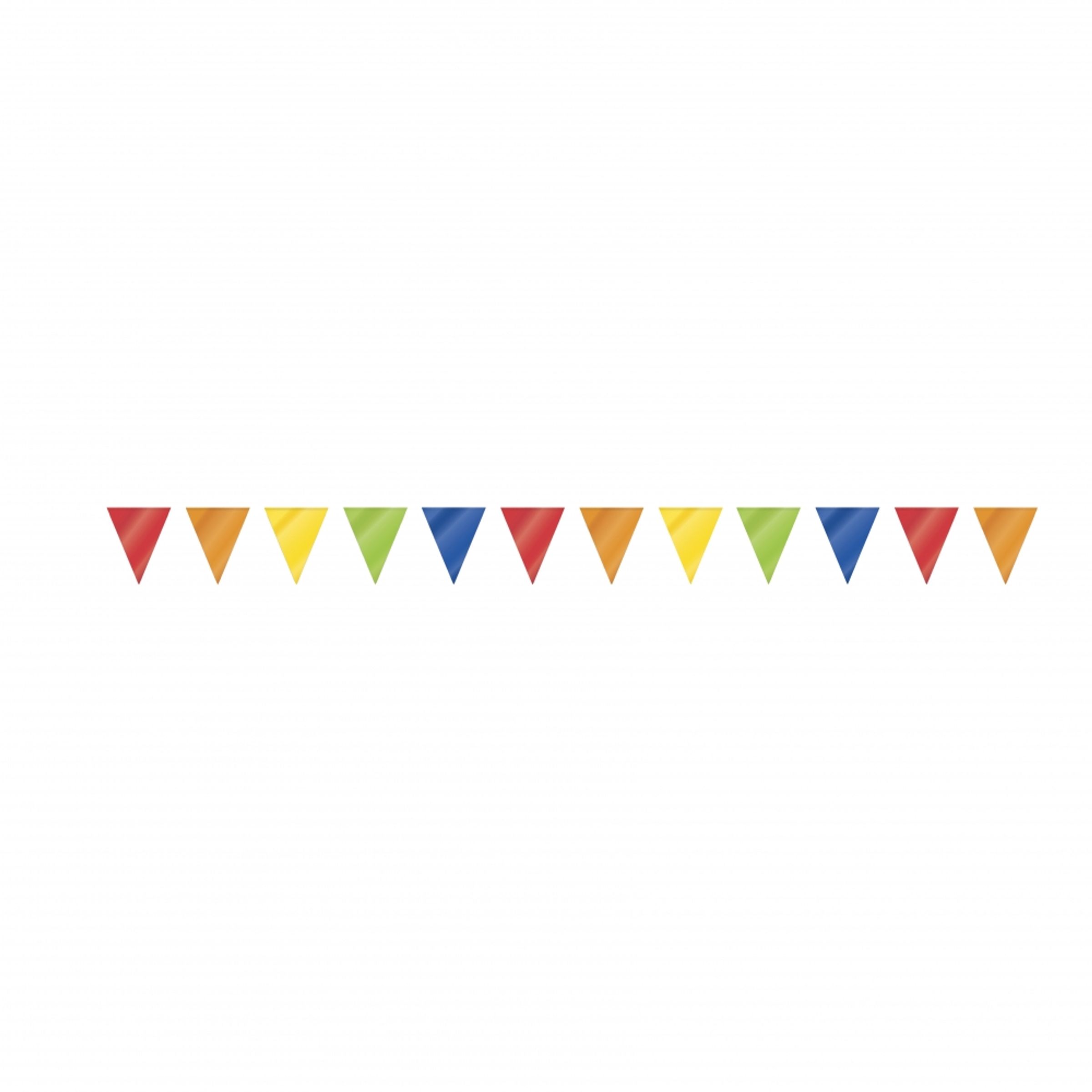 Flaggirlang Regnbåge är en dekorativ flaggirlang med flaggor i olika glada färger. Girlangen är tillverkad av tunn plast.