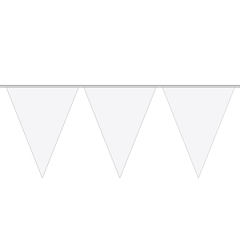 Med en flaggirlang kan du enkelt förvandla vilket rum som helst till en härlig fest! Just denna vimpelgirlang är inget undantag, häng bara upp den i taket eller mot en vägg och se hur hela rummet blir ett stämningsfullt party. Fantastisk vit girlang som är en utmärkt dekoration till exempelvis dop, bröllop, studenten och andra vita firanden.
