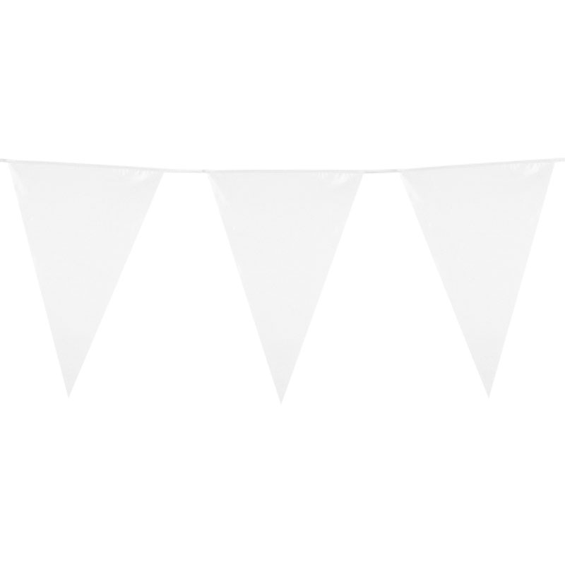 Flaggirlang Vit XL består av 18st vita flaggvimplar tillverkade av plastmaterial i varianten XL.