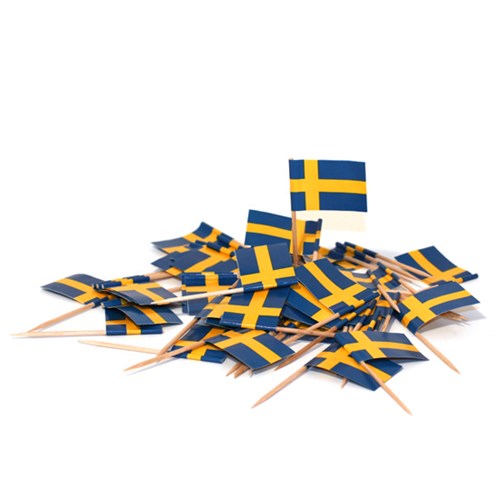 50 stycken svenska flaggor på tandpetare för dekoration!
