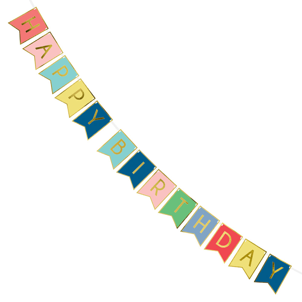 Önska födelsedagsbarnet grattis på födelsedagen med denna snygga Happy Birthday girlang! Den här Happy Birthday banderollen med hängande färgglada flaggor kan hängas upp mot en vägg, i ett tak eller varför inte vid kalasets entré för en inbjudande stämning. Trä på flaggorna på det medföljande snöret och dekorera sedan precis hur du vill med denna festliga Happy Birthday flaggirlang.