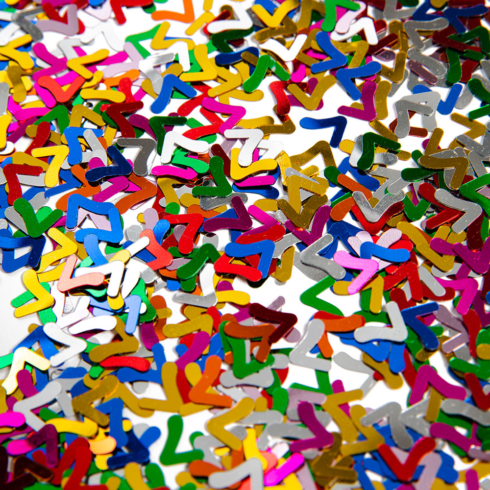 Flerfärgad Konfetti 7 år omfattar 14 gram konfetti som föreställer sjuor i flera olika färger.