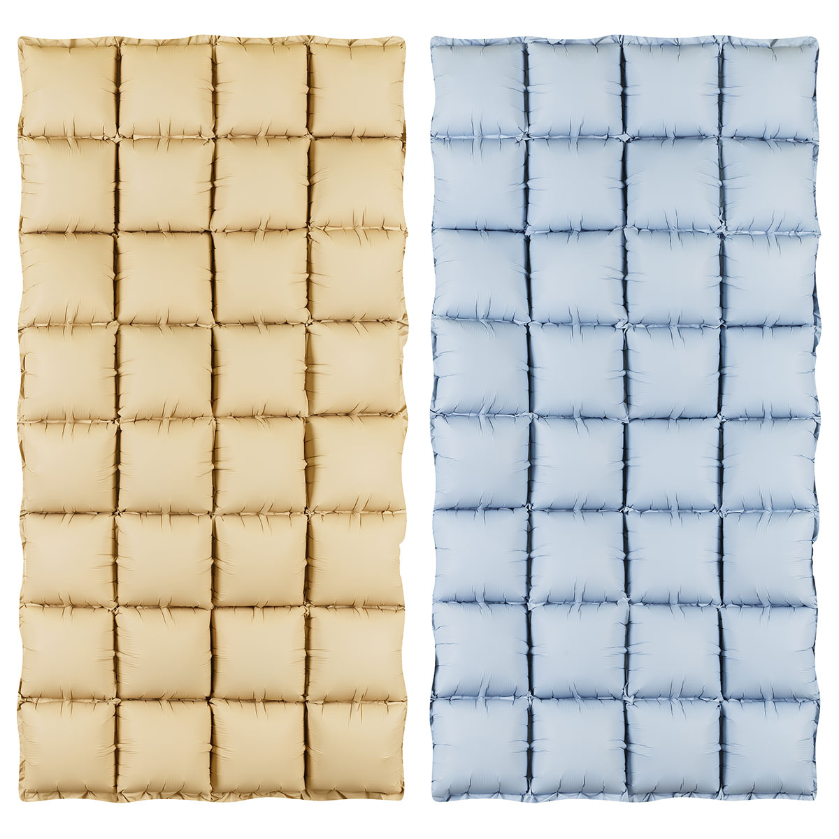 Folie Ballongvägg Beige & Ljusblå omfattar en väggdekoration med 32 sammansatta kvadratiska folieballonger, varav ena sidan är beige och den andra ljusblå. Ballongerna fylls med luft med det medföljande sugröret.