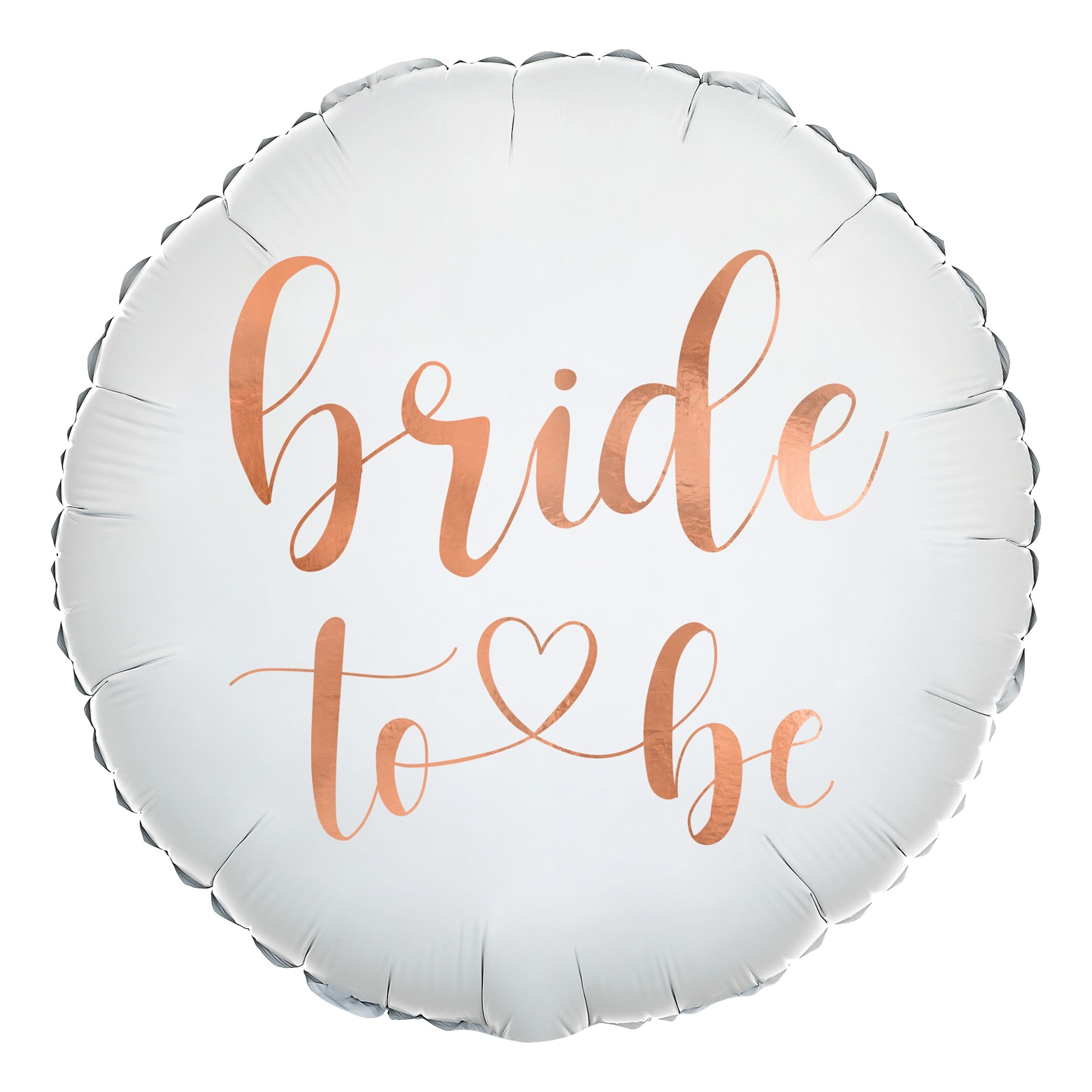 Folieballong Bride Rund Guld är en rund ballong i vitt med texten "Bride" i roséfärg. Kan fyllas med luft eller helium; med helium har den en flygtid på upp till 7 dagar. Ballongen mäter ca 45 cm.