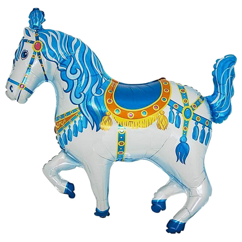 Folieballong Cirkushäst Blå omfattar en blå och vit folieballong i form av en cirkushäst. Ballongen rymmer 38 liter och är självförslutande. Rekommenderas att fyllas med helium.